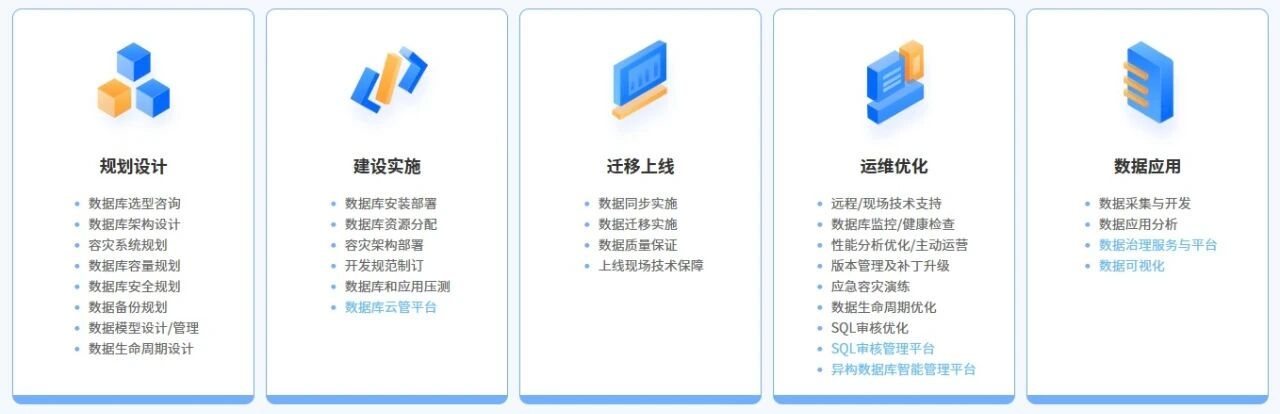 提供咨询、规划、实施、运维的全生命周期服务及产品。新炬网络基于广大客户群体的多年服务实践,为客户提供全生命周期的数据库服务与产品。