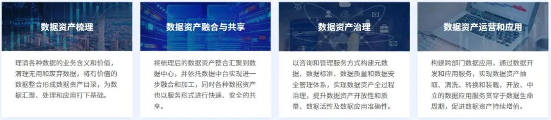 提供数据资产全生命周期管理。从数据资产梳理、整合、治理、共享、应用到数据销毁的全生命周期管理和咨询服务,具备完善的数据管理服务框架、完整的实施路线图,以及成熟的数据治理体系,提供数据资产管理平台、数据运营工具及专家团队支持,帮助企业降低运营成本,更聚焦于使用数据并发现全新业务价值。